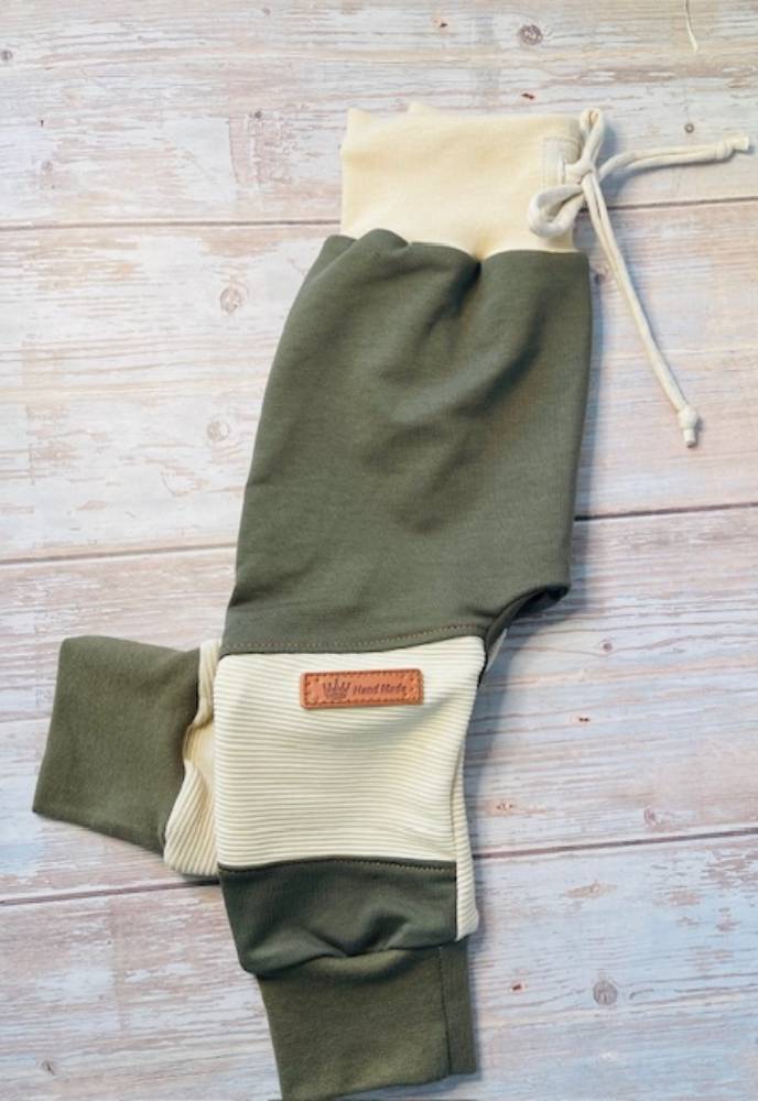 Posebnost hlačk so raztegljivi patenti v pasu in pri gležnjih, ki zagotavljajo popolno prileganje brez tiščanja. Kroj je skrbno zasnovan tako, da omogoča neovirano igro in raziskovanje. Kot prikupen dodatek imajo hlačke detajle, ki dopolnjujejo naraven in preprost videz.
