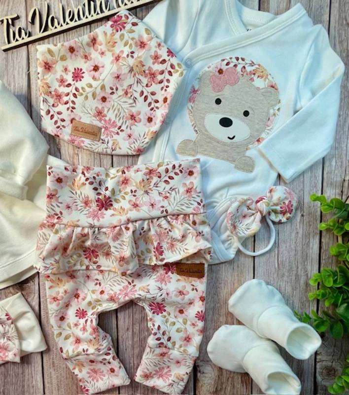 Ročno izdelano s pozornostjo na detajle – vsak kos je ustvarjen unikatno posebej za vas in z mislijo na dobro počutje novorojenčka. Body ni ročno šivan, a je skrbno izbran z občutkom za kakovost.