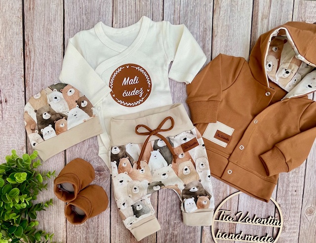Ročno izdelano s pozornostjo na detajle – vsak kos je ustvarjen unikatno posebej za vas in z mislijo na dobro počutje novorojenčka.