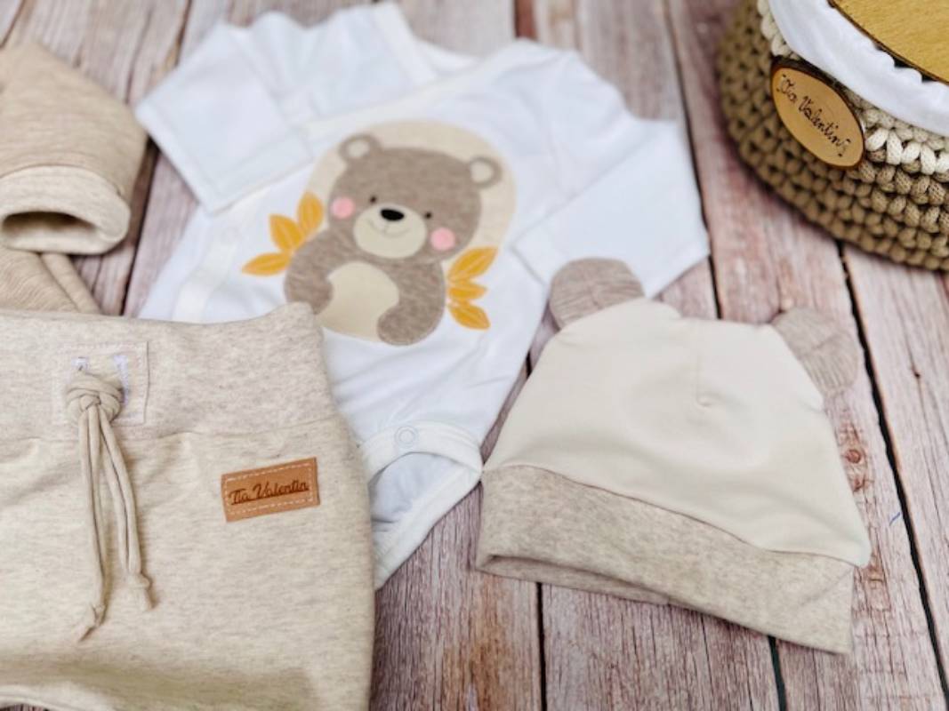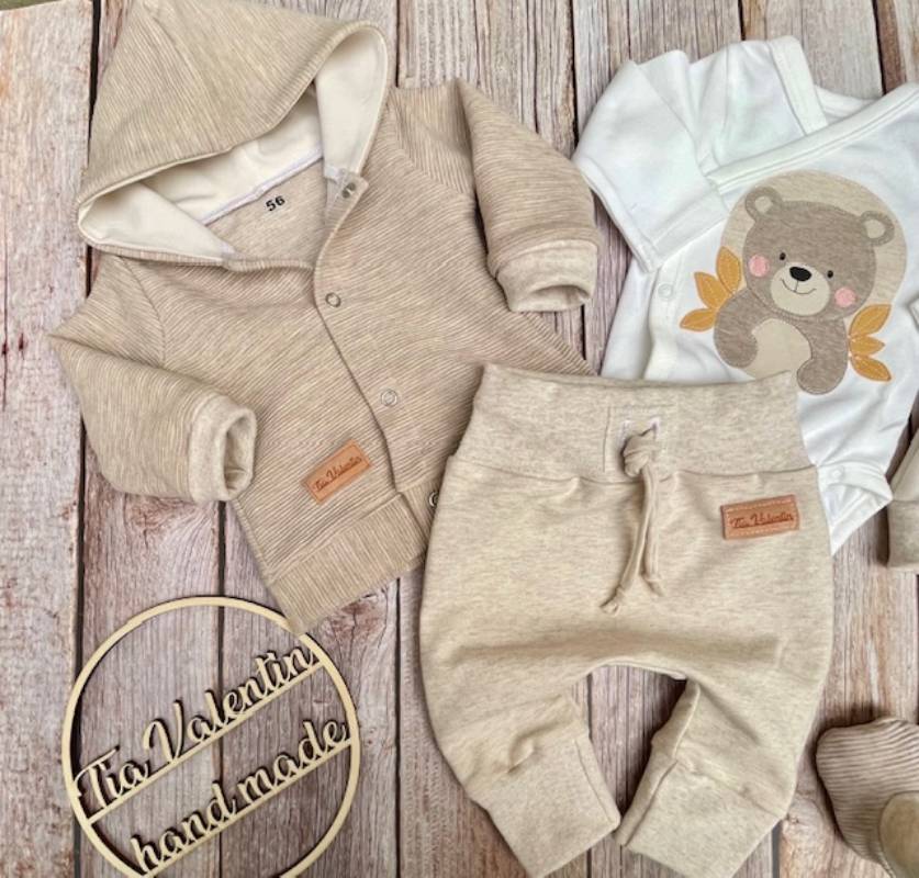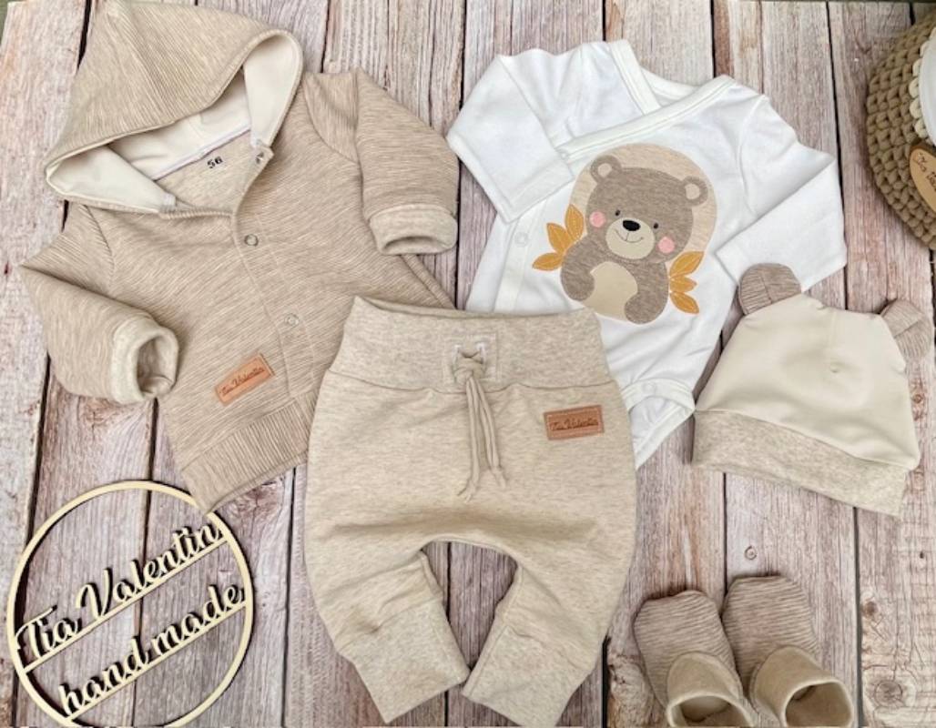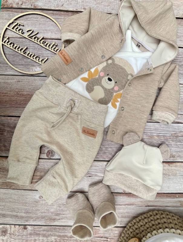 Ročno izdelano s pozornostjo na detajle – vsak kos je ustvarjen unikatno posebej za vas in z mislijo na dobro počutje novorojenčka. Body ni ročno šivan, a je skrbno izbran z občutkom za kakovost.