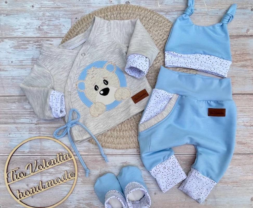 Ročno izdelano s pozornostjo na detajle – vsak kos je ustvarjen unikatno posebej za vas in z mislijo na dobro počutje novorojenčka.